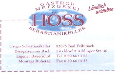 Einkehr: Gasthof Höss in Litzldorf, Tel. 0 80 66 / 355 (Montag Ruhetag); Schlipfgrubalm am Sulzberg (Freitag Ruhetag)